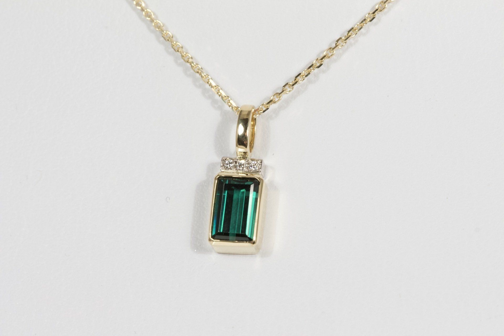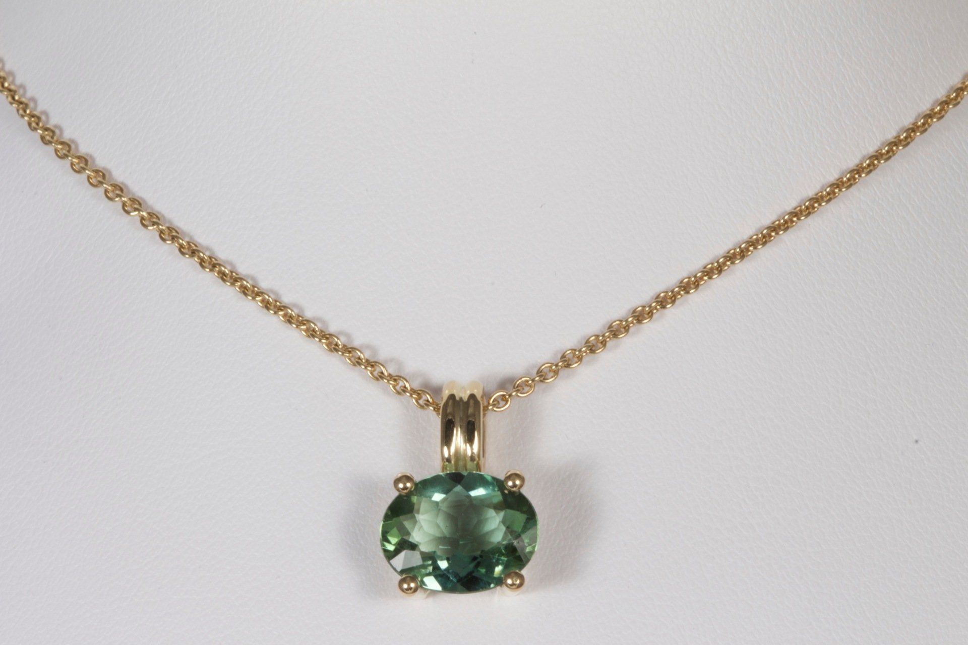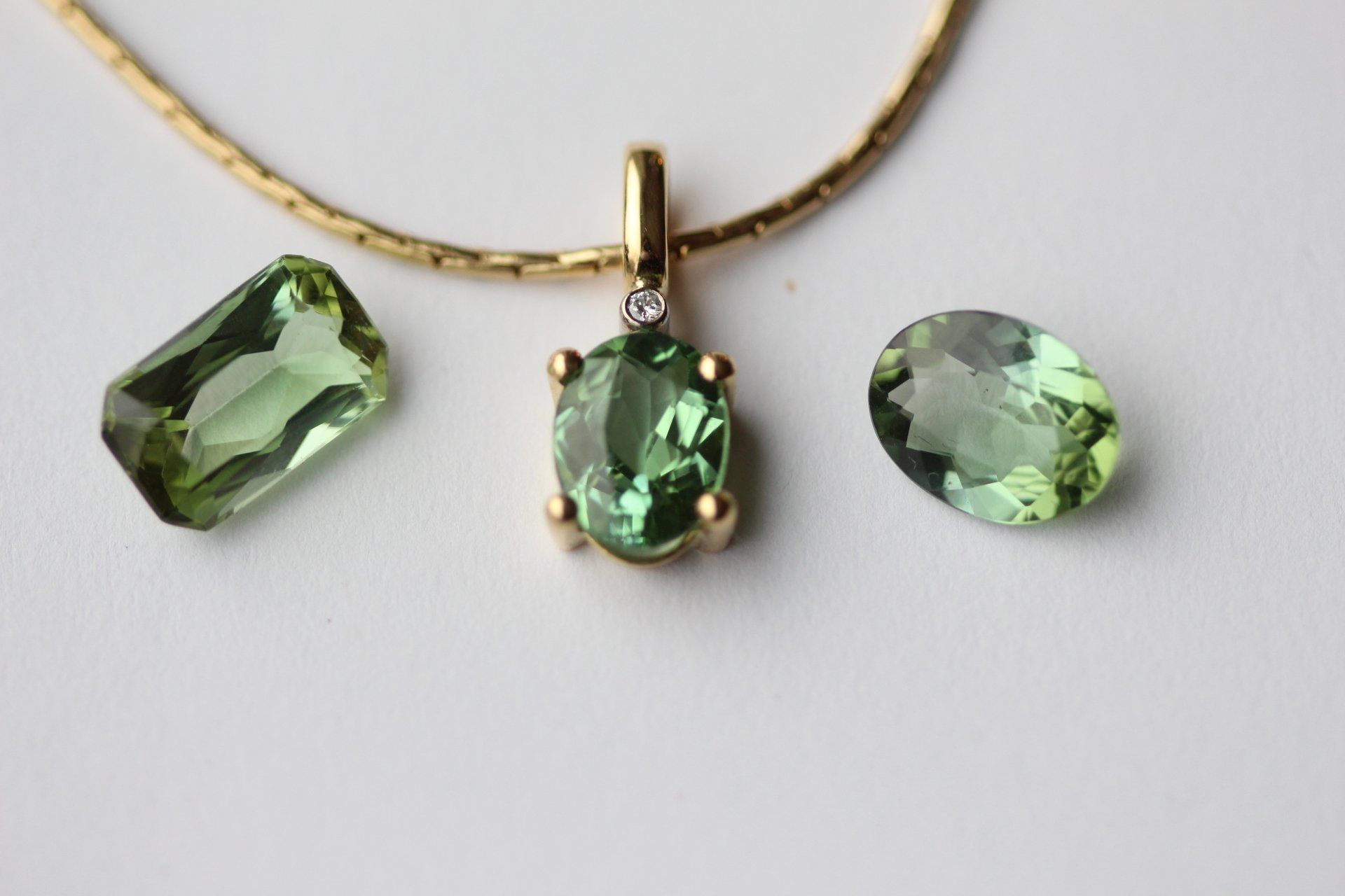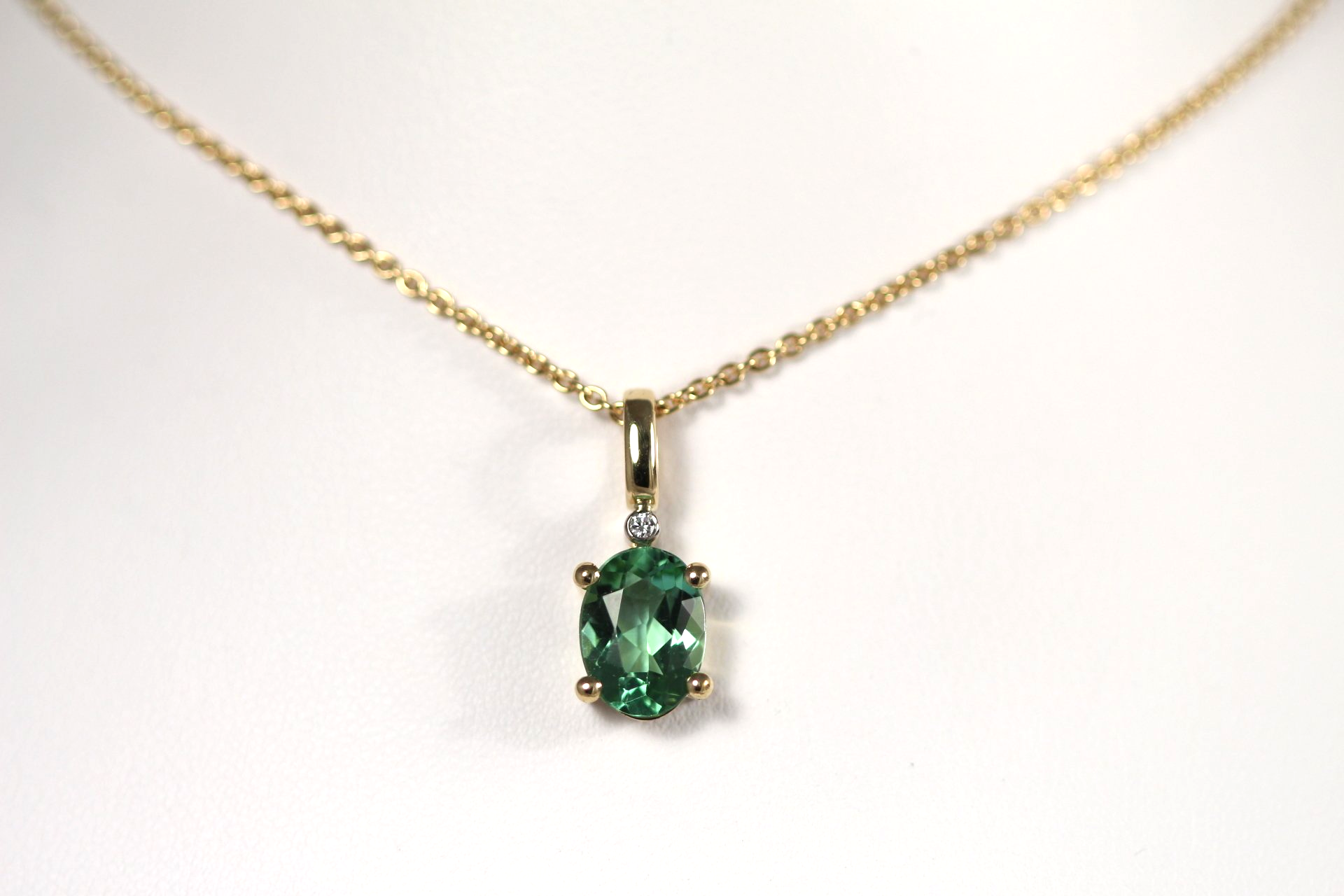 Hanger in 18 krt geelgoud met groene tourmalijn.