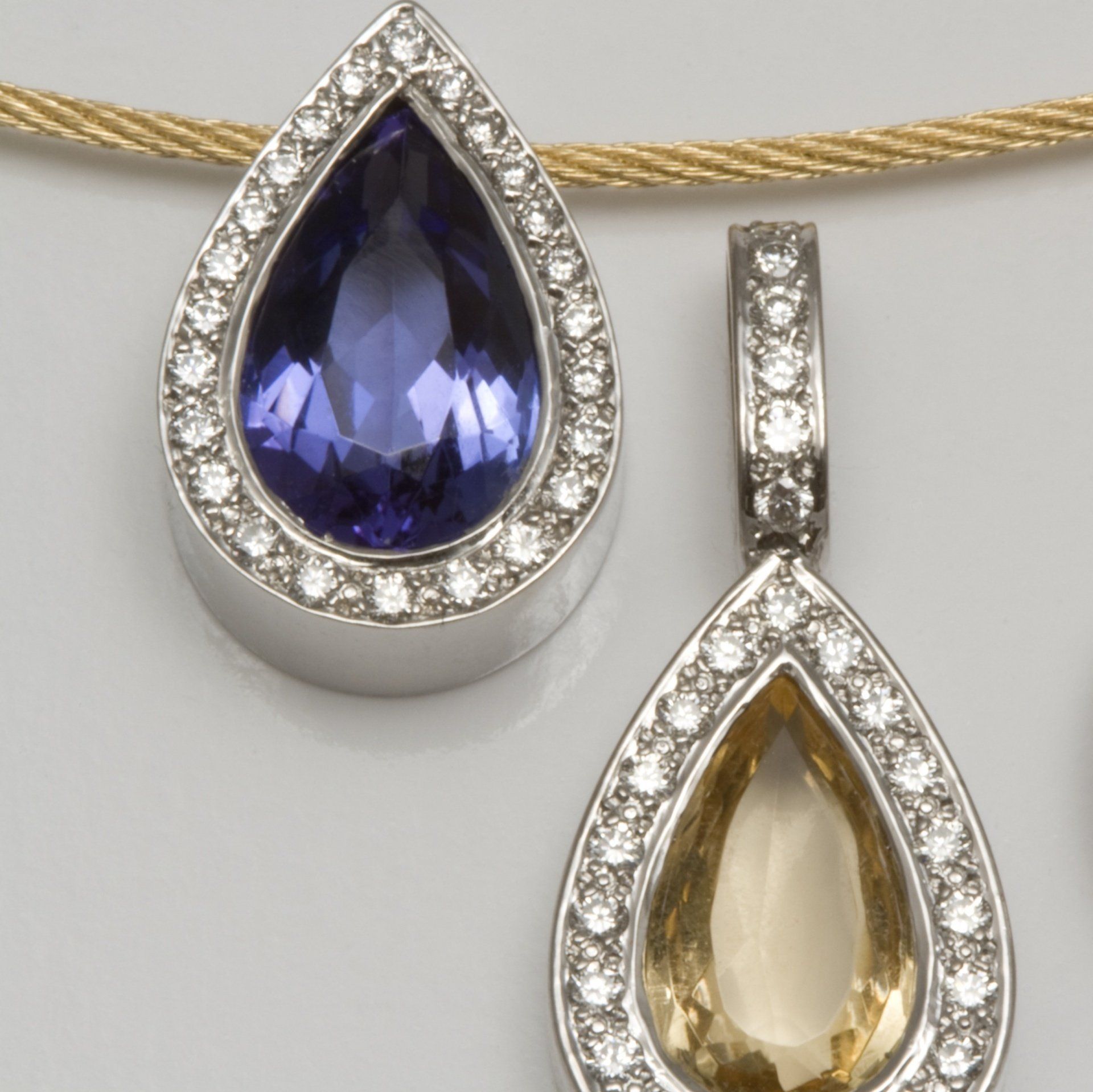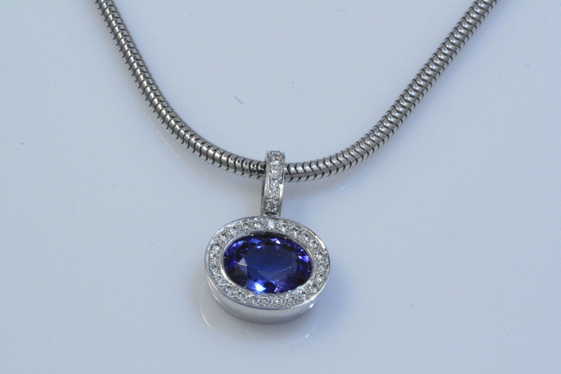 Hanger in 18 krt witgoud met tanzaniet en brillanten pavé gezet