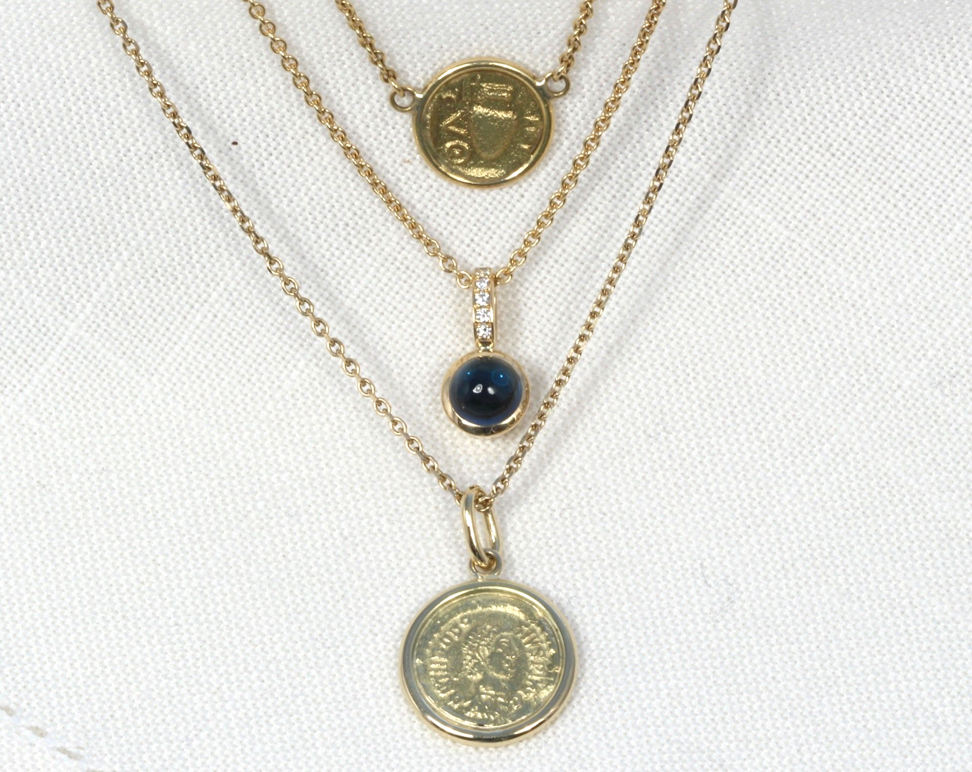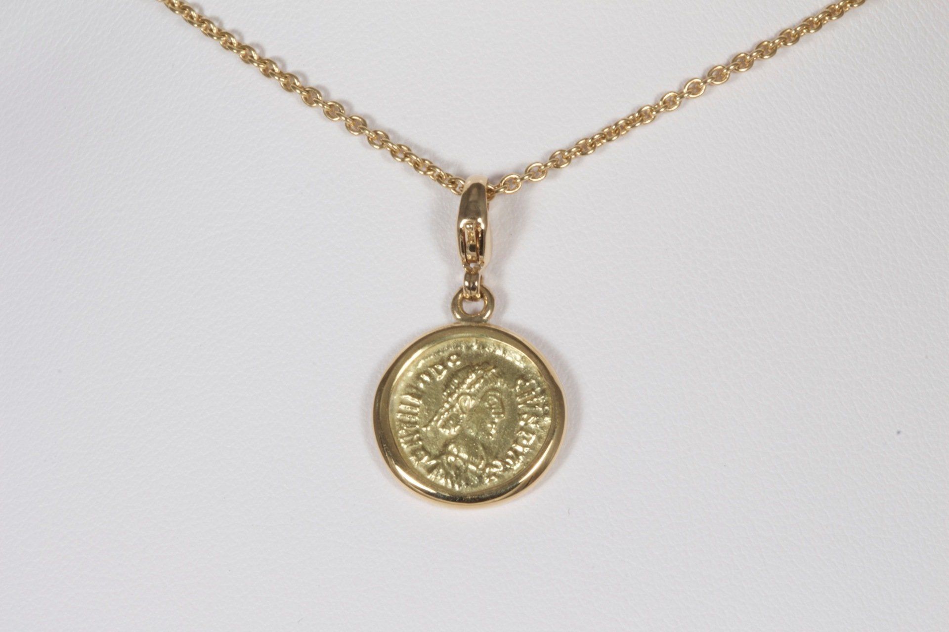 Hanger in 18 krt geelgoud met in goud gegoten antieke munt