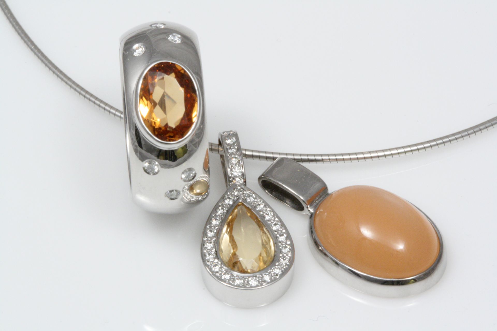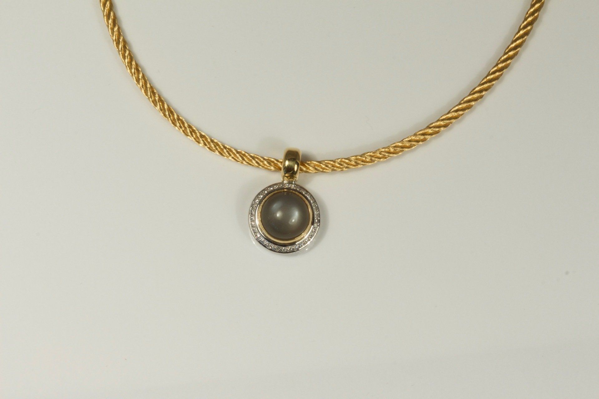 Hanger in 18 krt wit- en geelgoud met cabochon maansteen en brillant pavé gezet