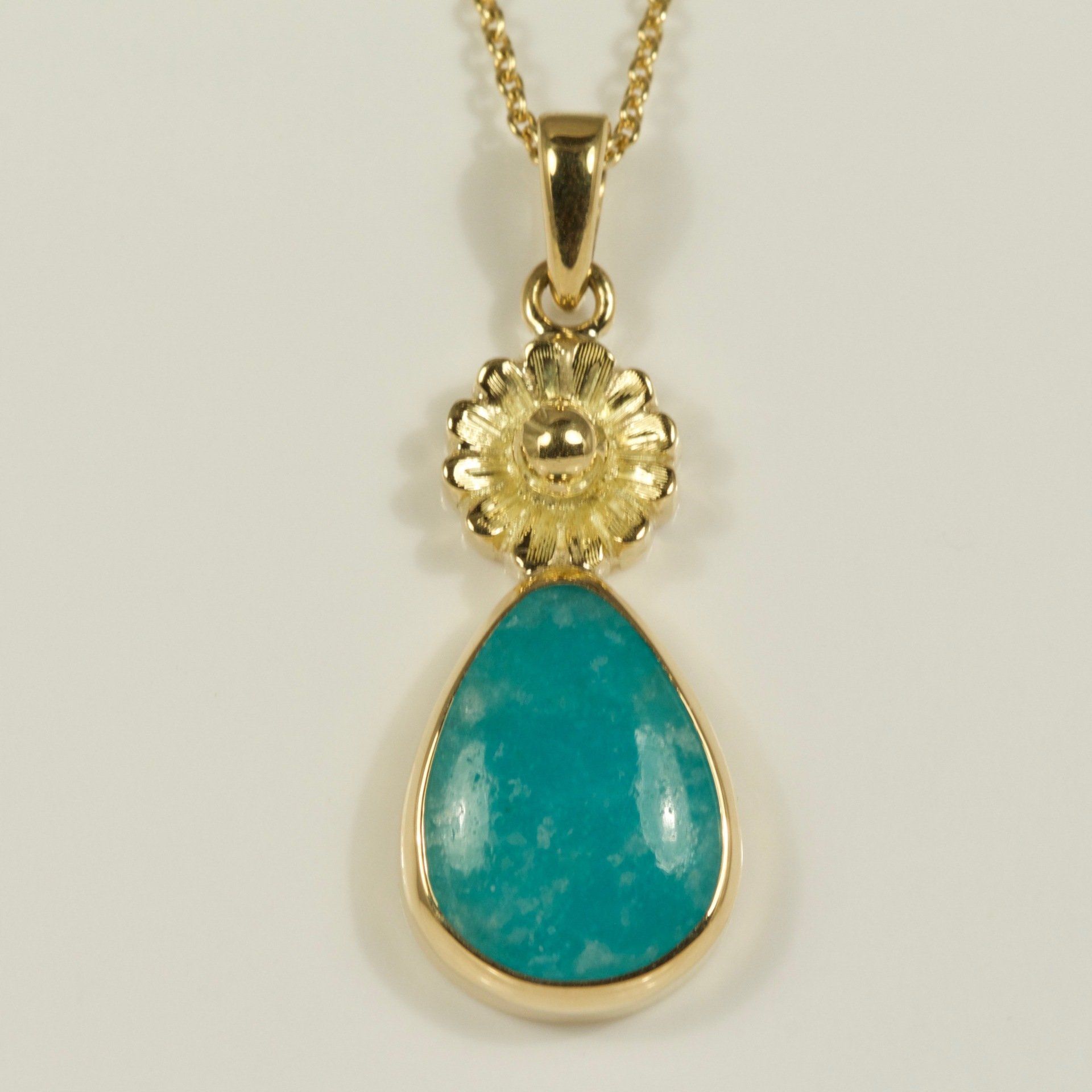 Hanger in 18 krt geelgoud met amazoniet en zonnebloem