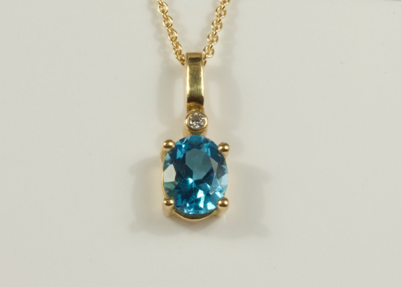 Hanger in 18 krt geelgoud met blauwe topaas.