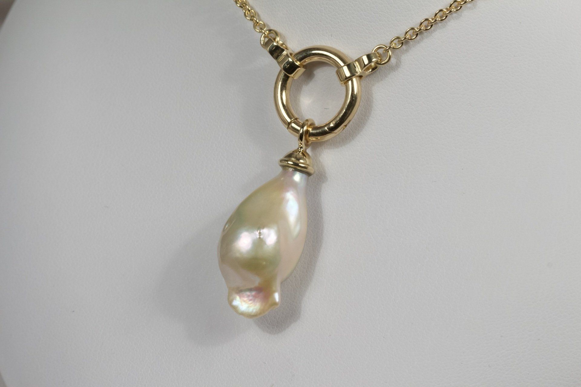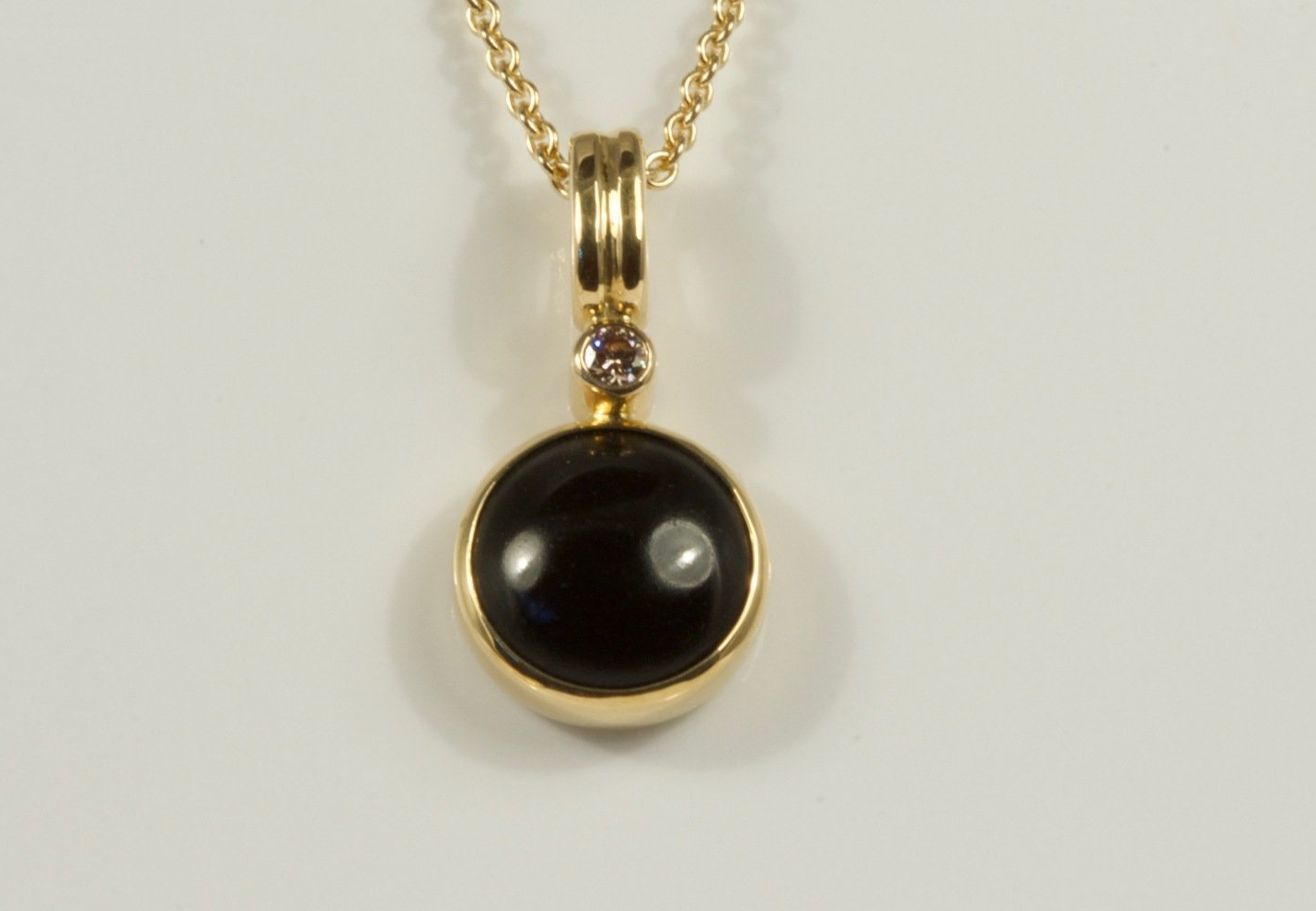 Hanger in 18 krt geelgoud met cabochon nefriet en brillant