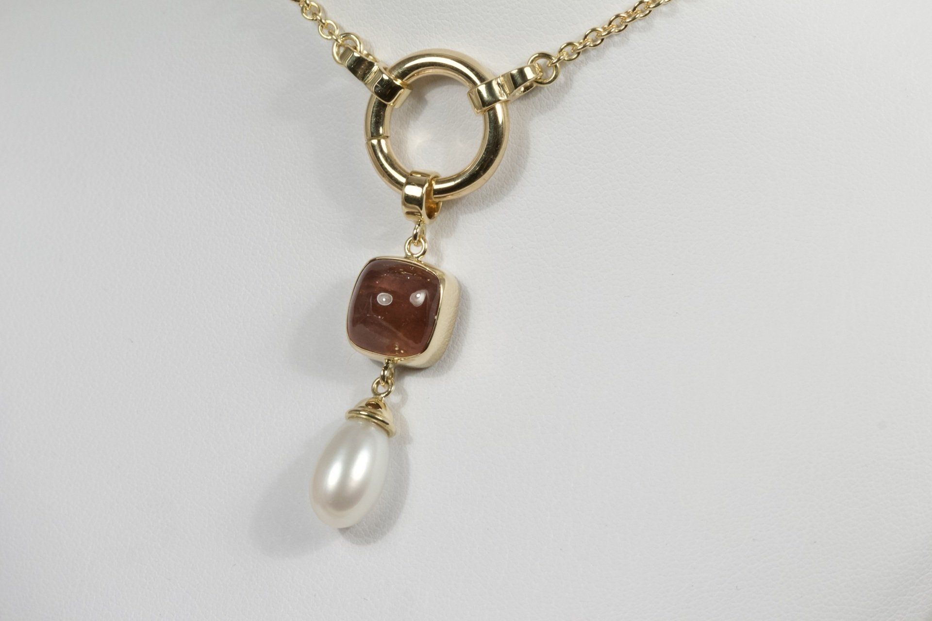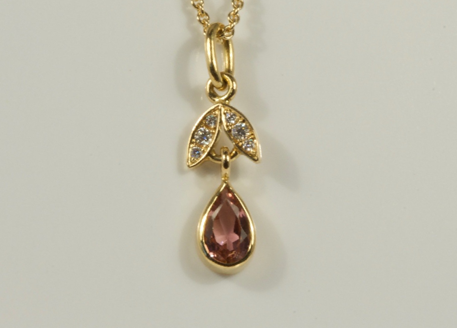 Hanger in 18 krt geelgoud met roze tourmalijn en brillanten pavé gezet