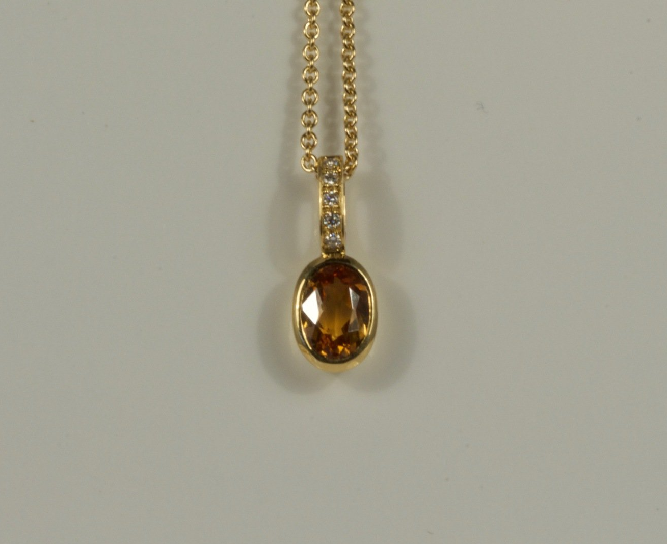 Hanger in 18 krt geelgoud met grossulaar en brillant