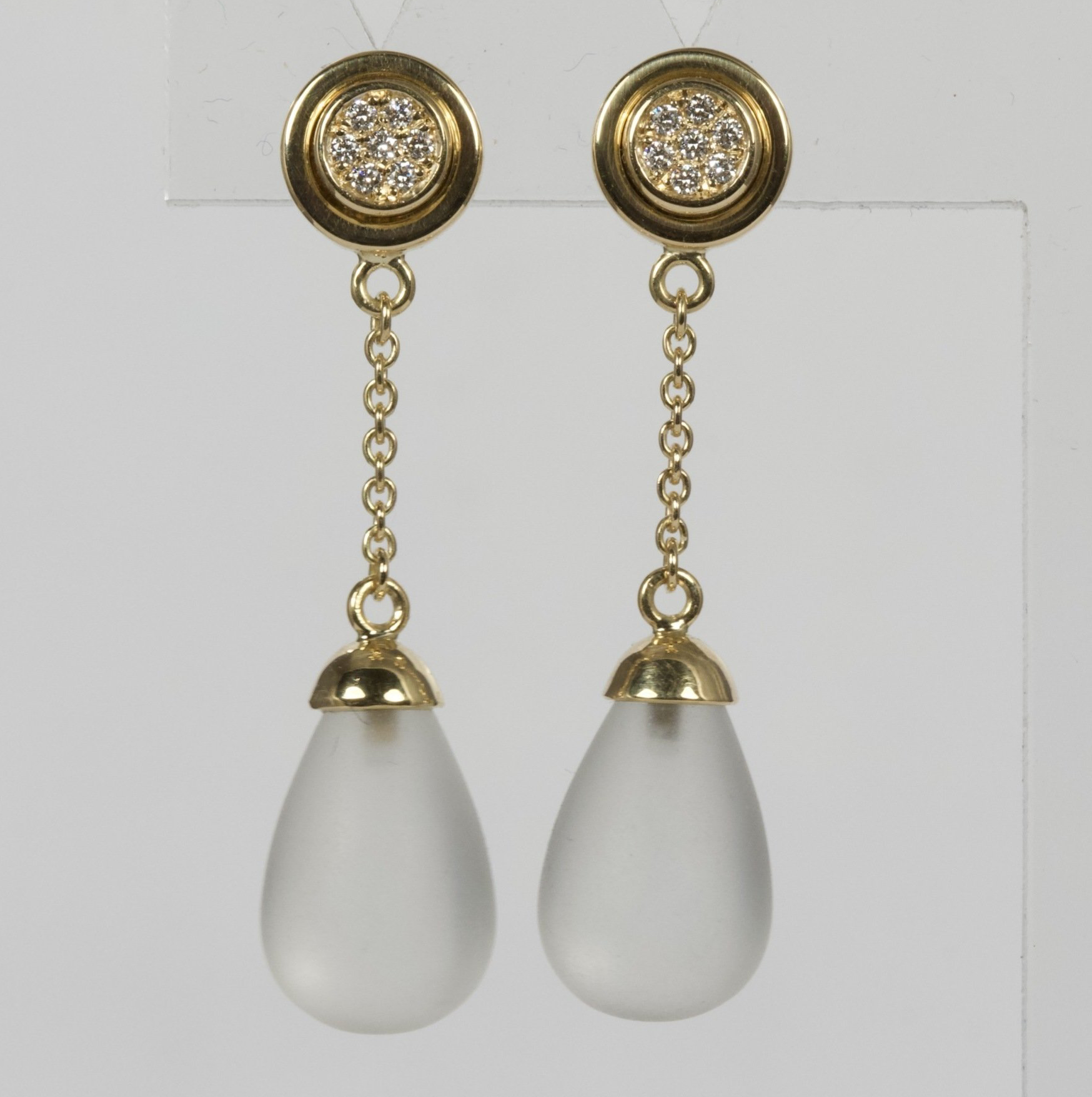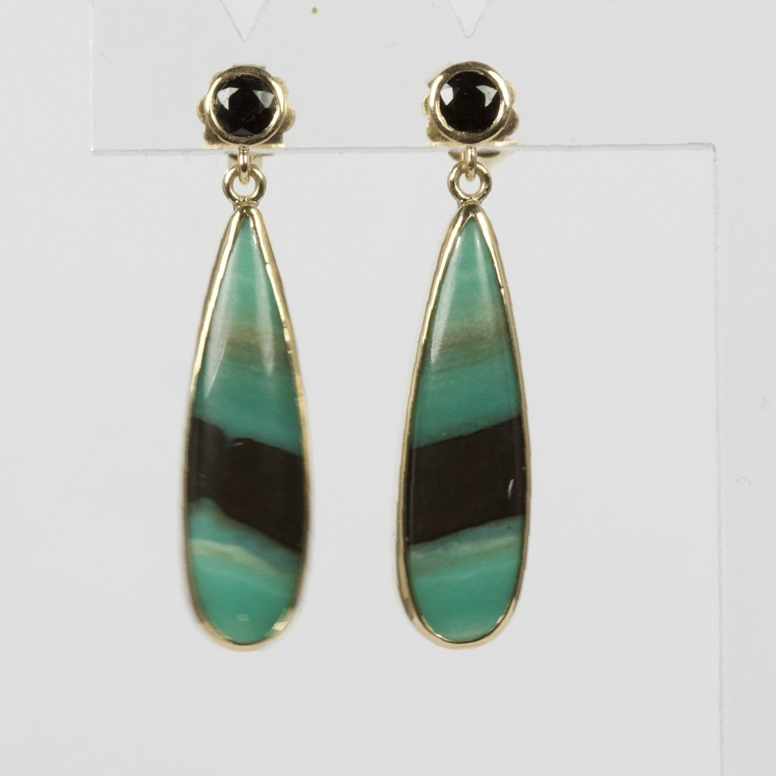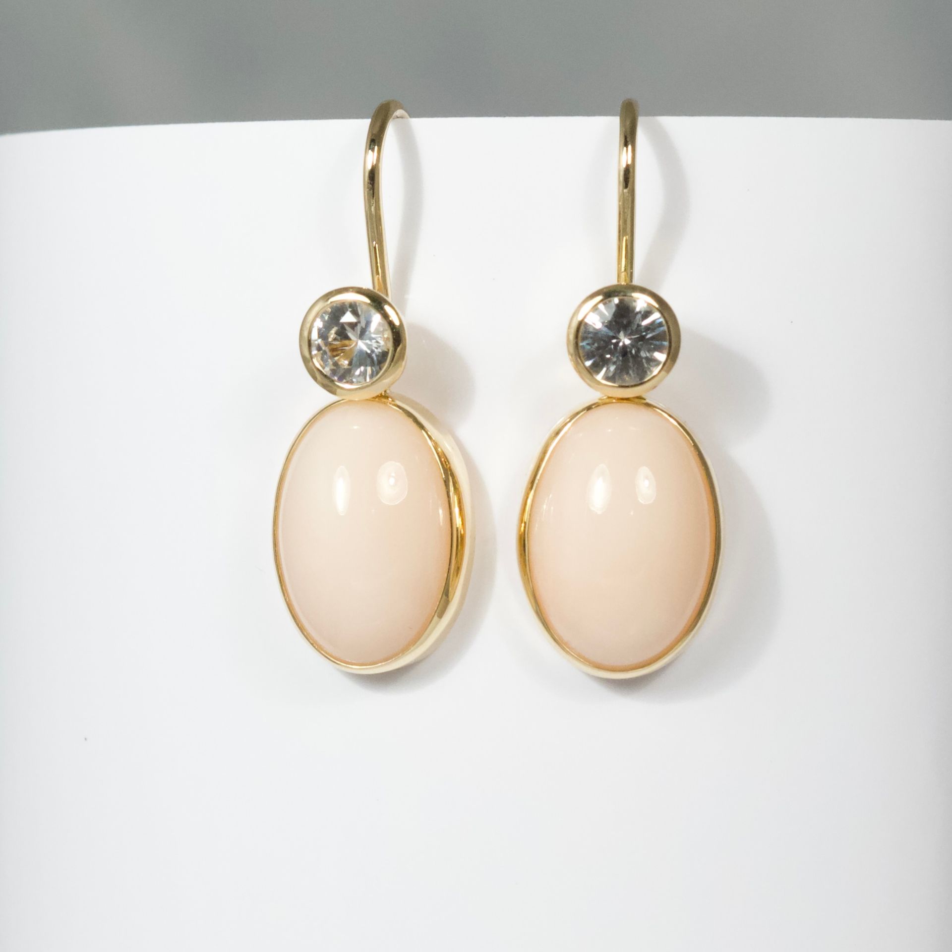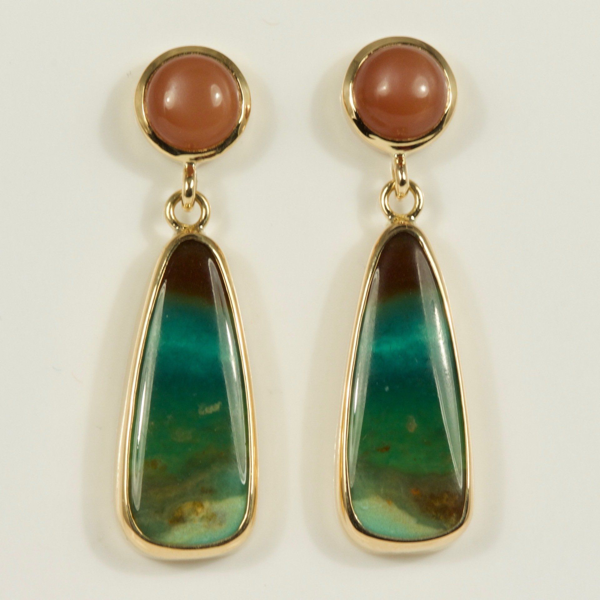 Oorhangers in 18 krt geelgoud met chrysopraas in chaton met vier poten.