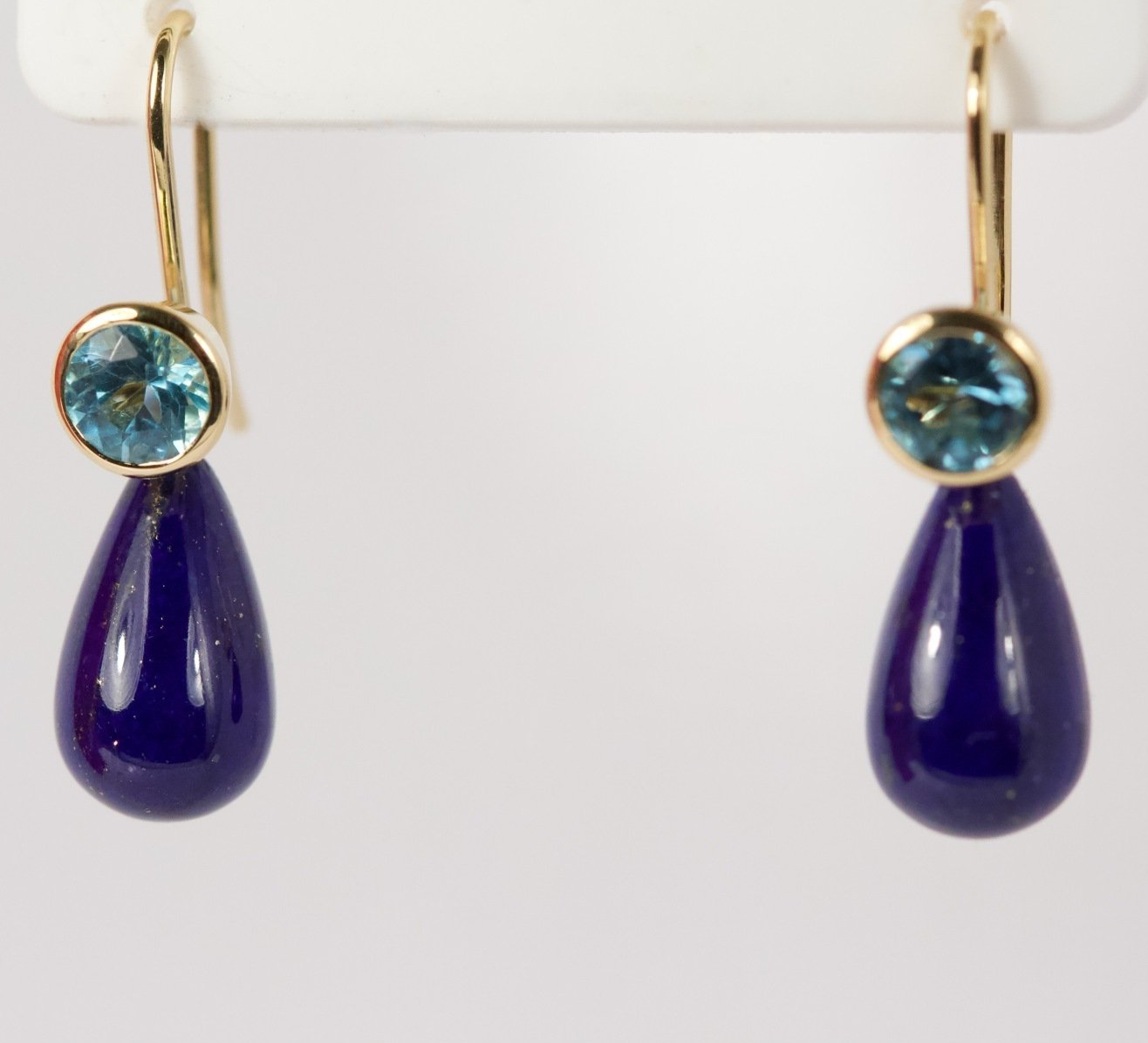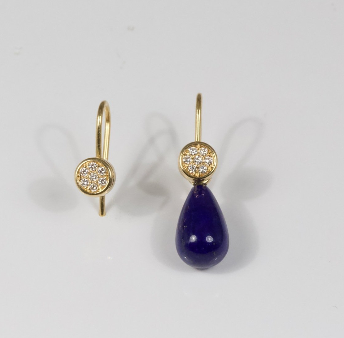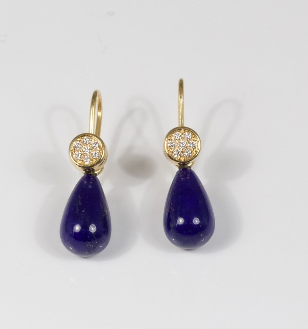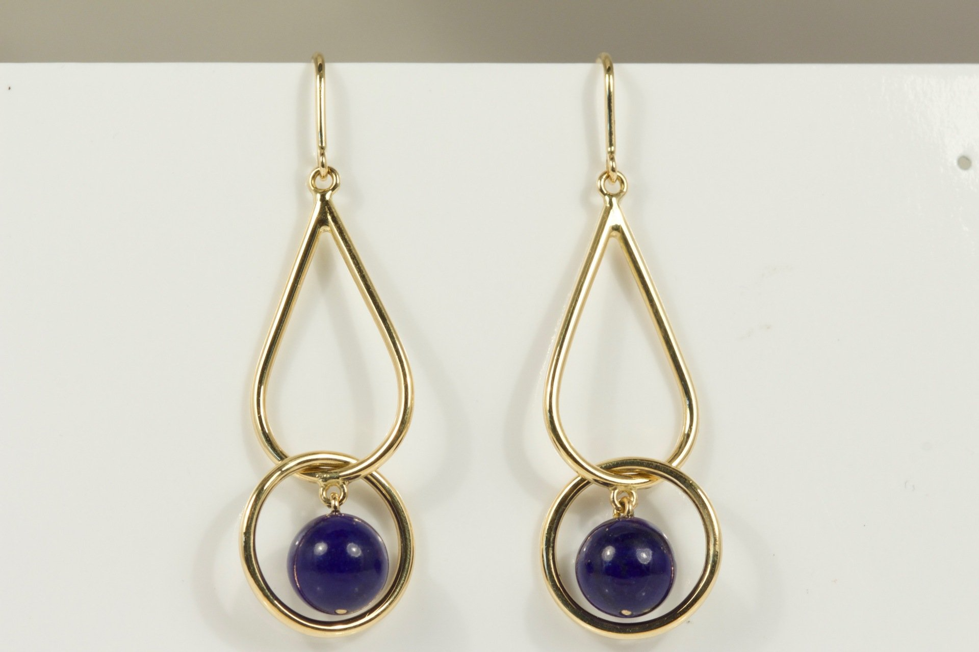 Oorhangers in 18 krt geelgoud met lapis lazuli