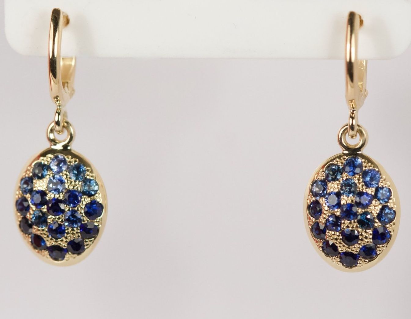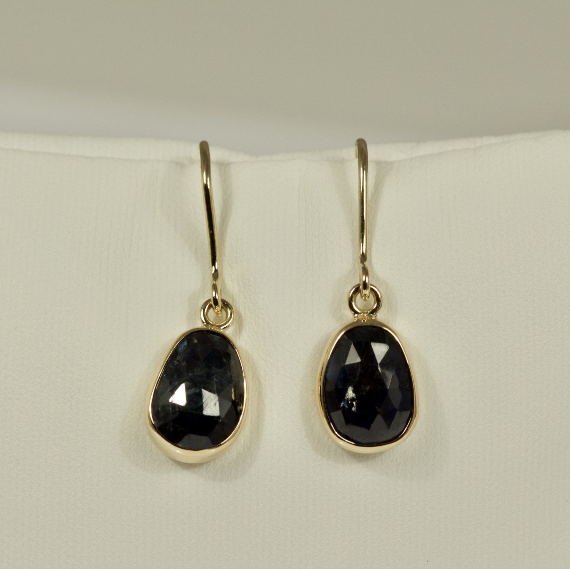 Oorhangers in 18 krt geelgoud met roosgeslepen donkerblauwe saffier